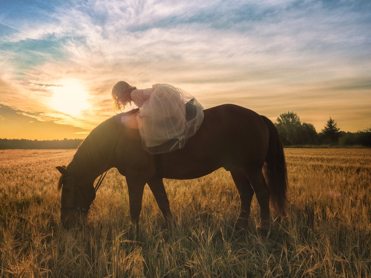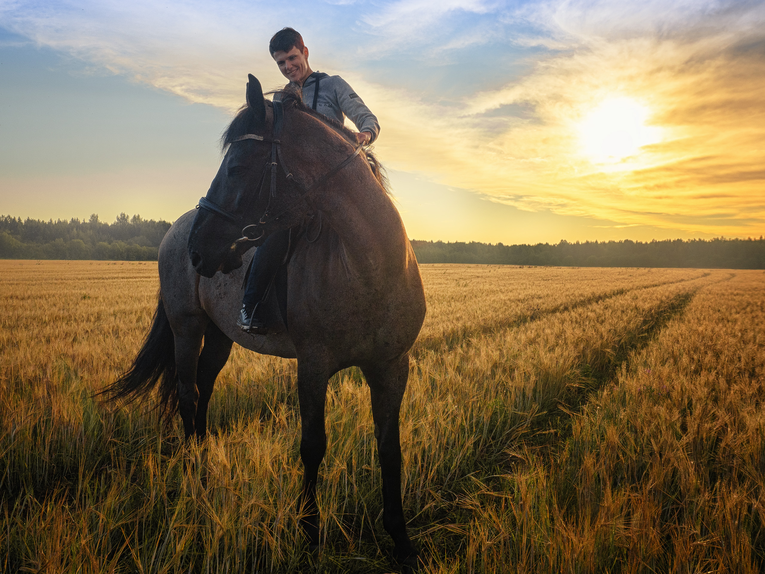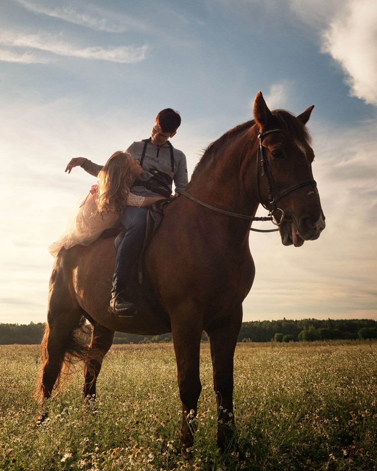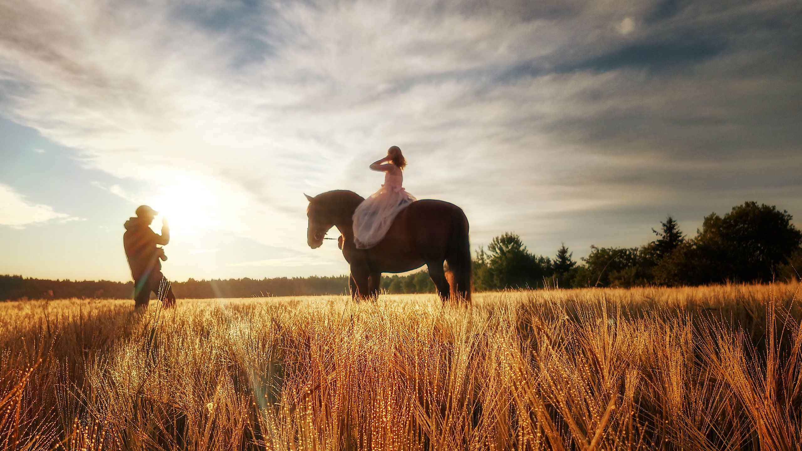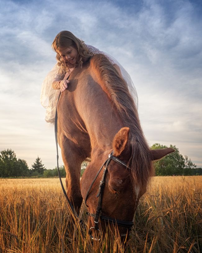 Фотосъемка с лошадьми в поле Ленинградская область.